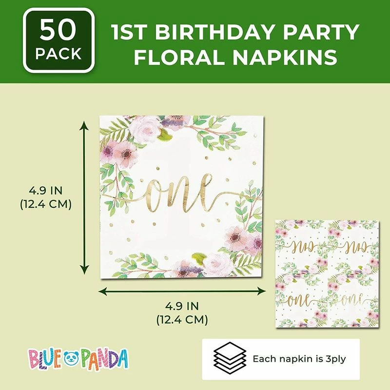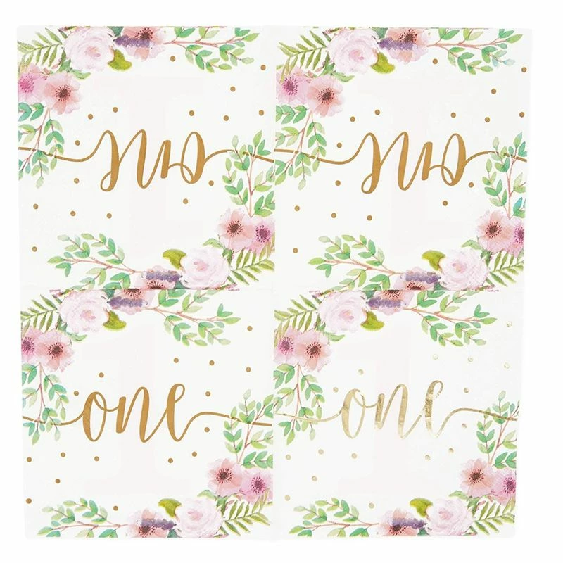 - BABY GIRLS FIRST BIRTHDAY: Add these napkins to your baby’s first birthday party supplies, the pastel pink floral flowers and gold lettering will help create a cohesive theme throughout your event