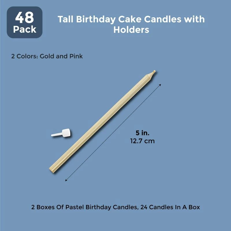 - FUN EYE CATCHING DESIGN: Candles feature 2 stylish colors: metallic gold, and pink; The detachable holder ensures stability in any cake, cupcake or dessert