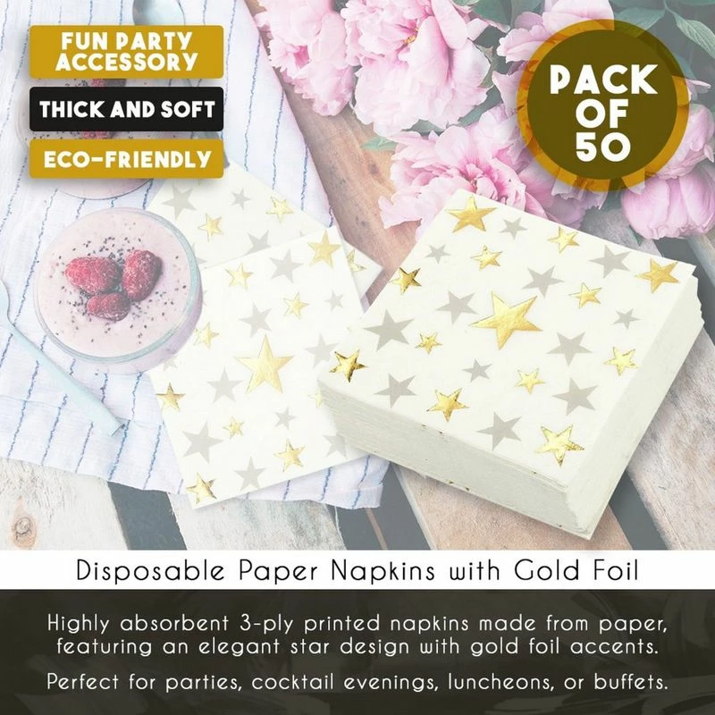 - FOIL STAR DESIGN: Set includes 50 pack cocktail napkins with silver and gold foil stars design