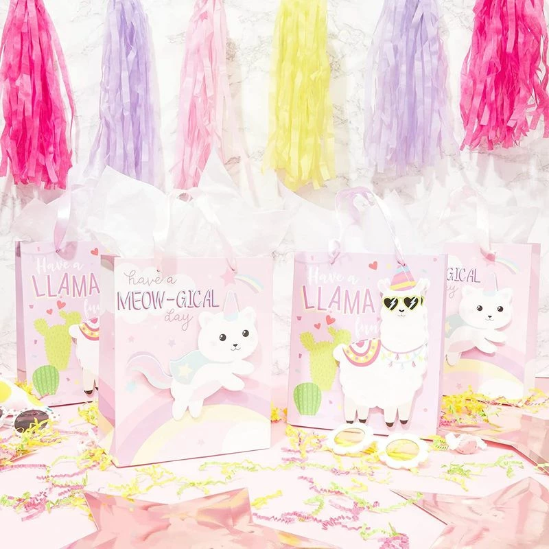 Get yourself a pack of beautiful paper bags for gifts that are available in bright and vibrant colors. The bags come decorated with cats, dinosaurs, sharks, and llamas! These bags are ideal for events and parties to hand out small gift items. The bags come with sturdy handles that allow them to be extremely durable.