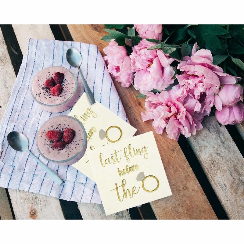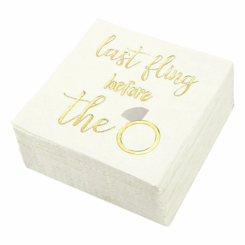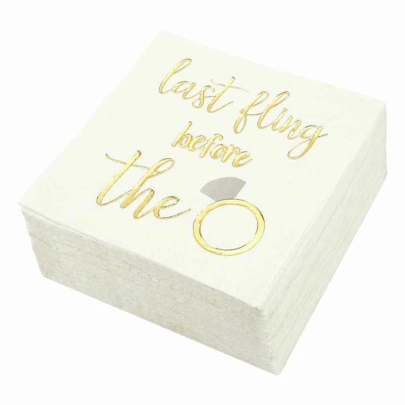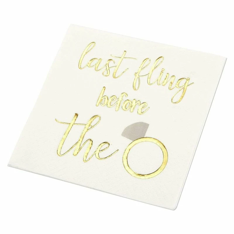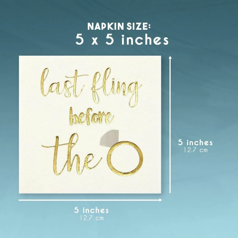 50 Pack Cocktail Napkins Bachelorette Party Napkins Last Fling Before The Ring Printed in Gold Foil 5 x 5 inches Folded