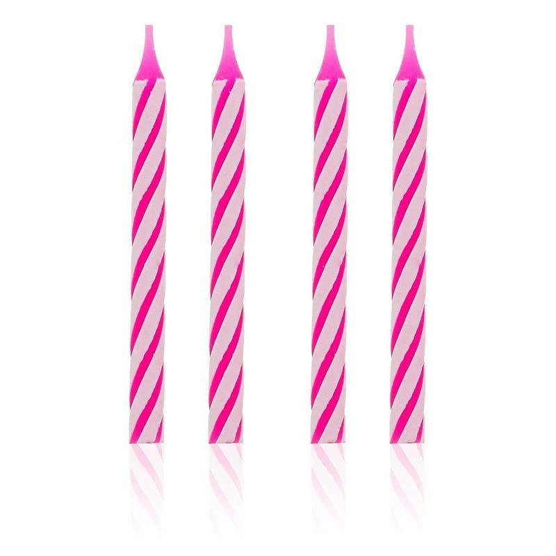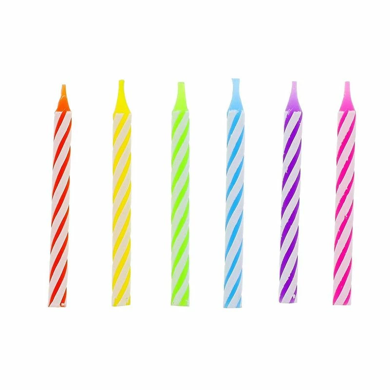 - Striped short candles include 6 colors: red, yellow, green, blue, purple, and pink