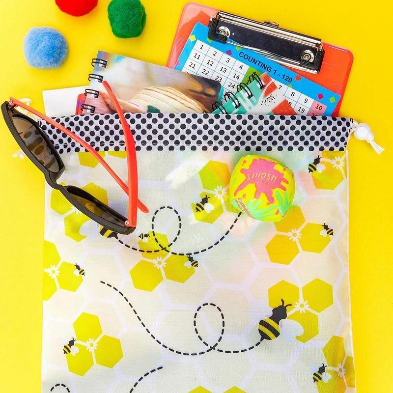 - WHAT’S INCLUDED: Includes 12 black and yellow bumble bee drawstring bags