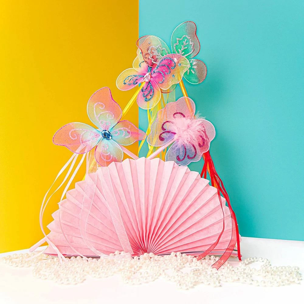 12 Pack Princess Wands Fairy Butterfly Magic Wands Dress up & Pretend Play Multicolor
