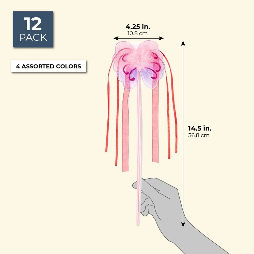 - What’s Included: Toy princess wand kits include 12 ribbon butterfly wands in mixtures of pink, yellow, green, and blue