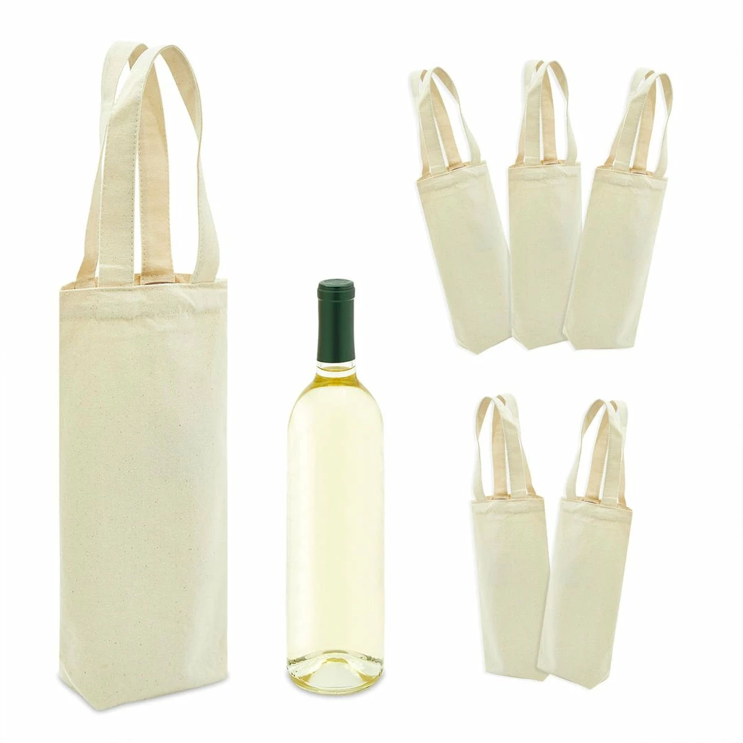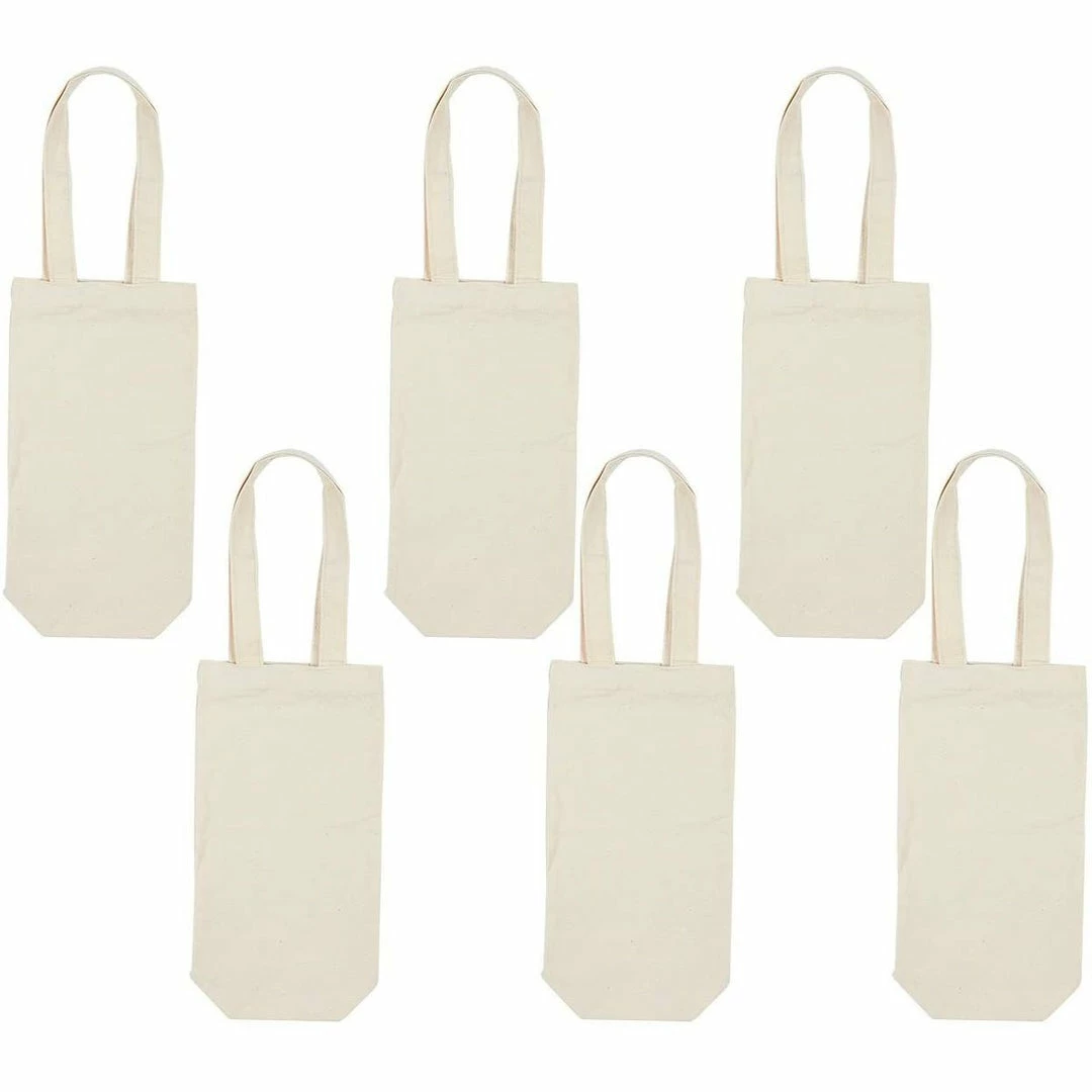 Wine Tote Bags 6 Pack Wine Carrying Bag Set Bottle Gift Bags Cotton Canvas Travel Storage Bags Picnic Wine Accessories Off-White 6.5 x 12.2 x 2.8 Inches
