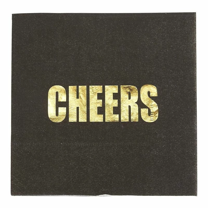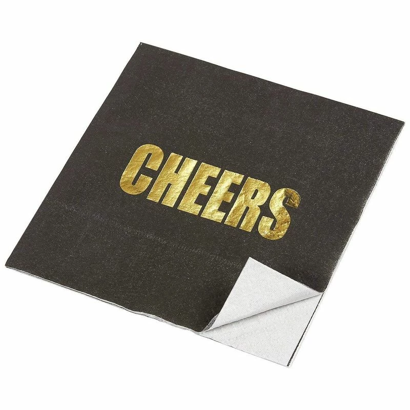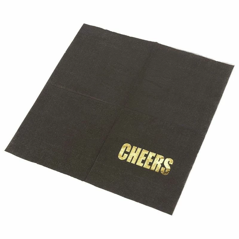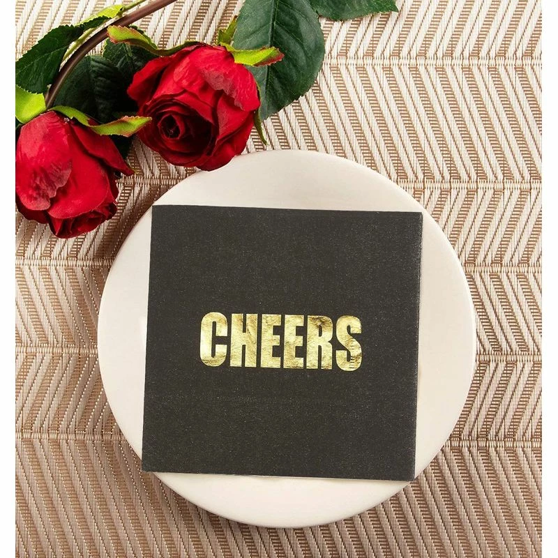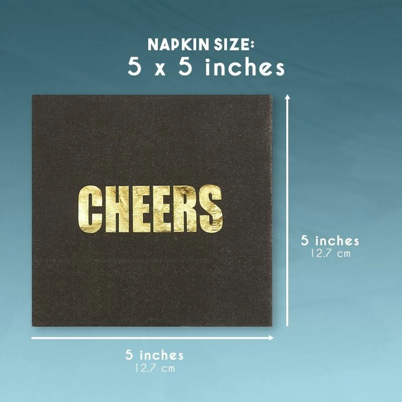 50 Pack Cocktail Napkins Gold Foil CHEERS Disposable Paper Party Napkins 5 x 5 Inches Folded Black