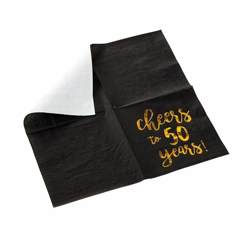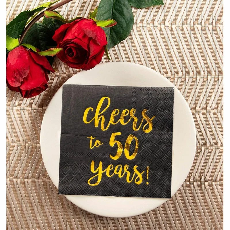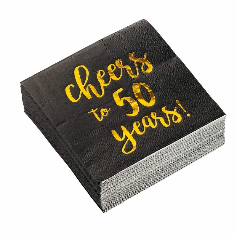 - SET INCLUDES: 50 highly absorbent 3-ply party napkins made from paper featuring a “Cheers to 50 Years” imprint in gold foil