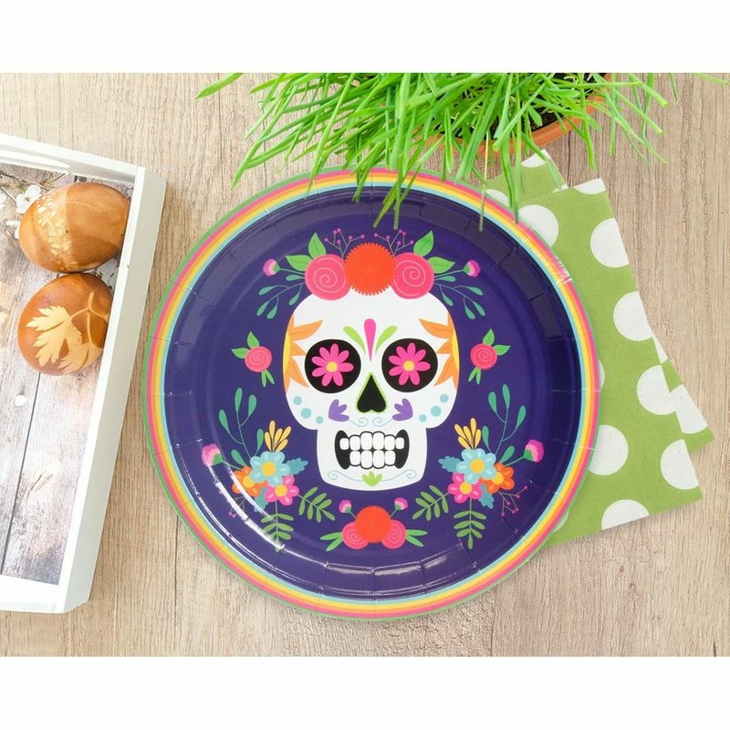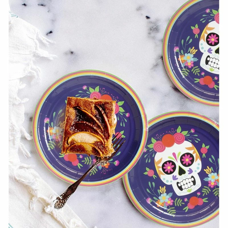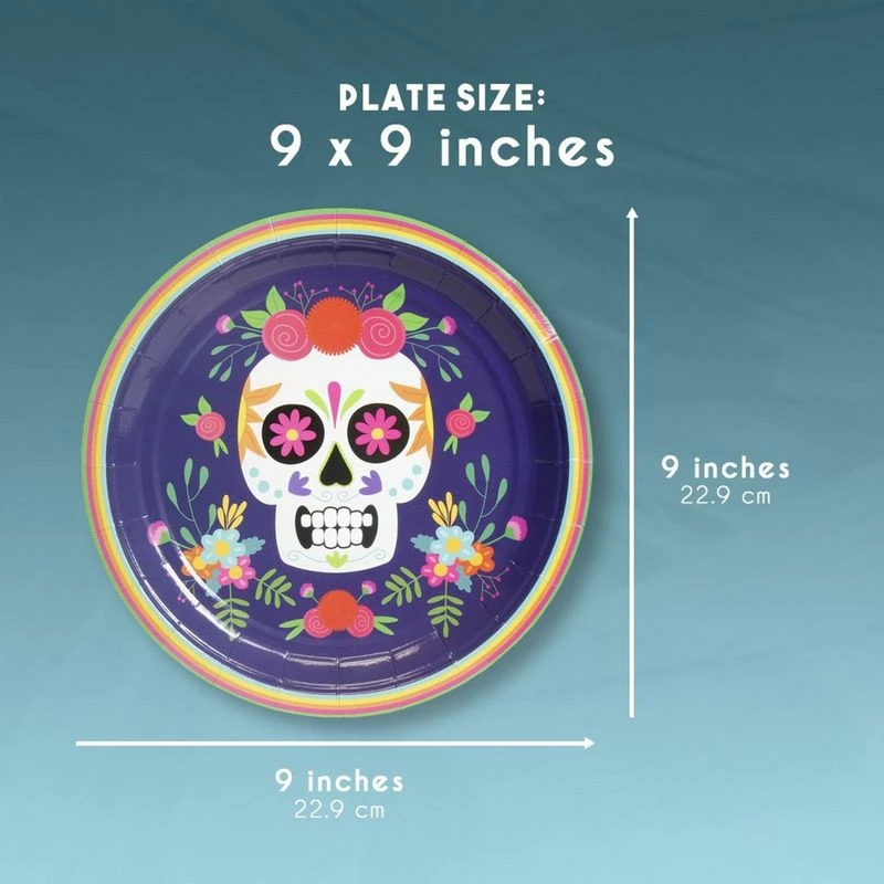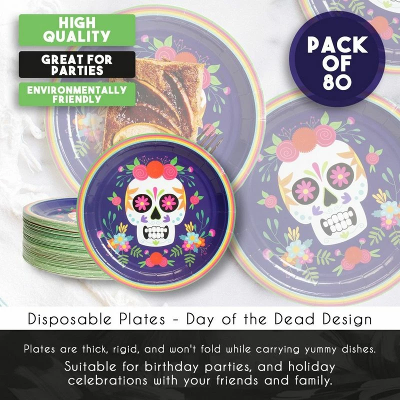 - SERVES 80: Includes enough Day of the Dead sugar skull plates for 80 guests; contains 80 paper plates featuring a calavera design for Dia de Muertos.