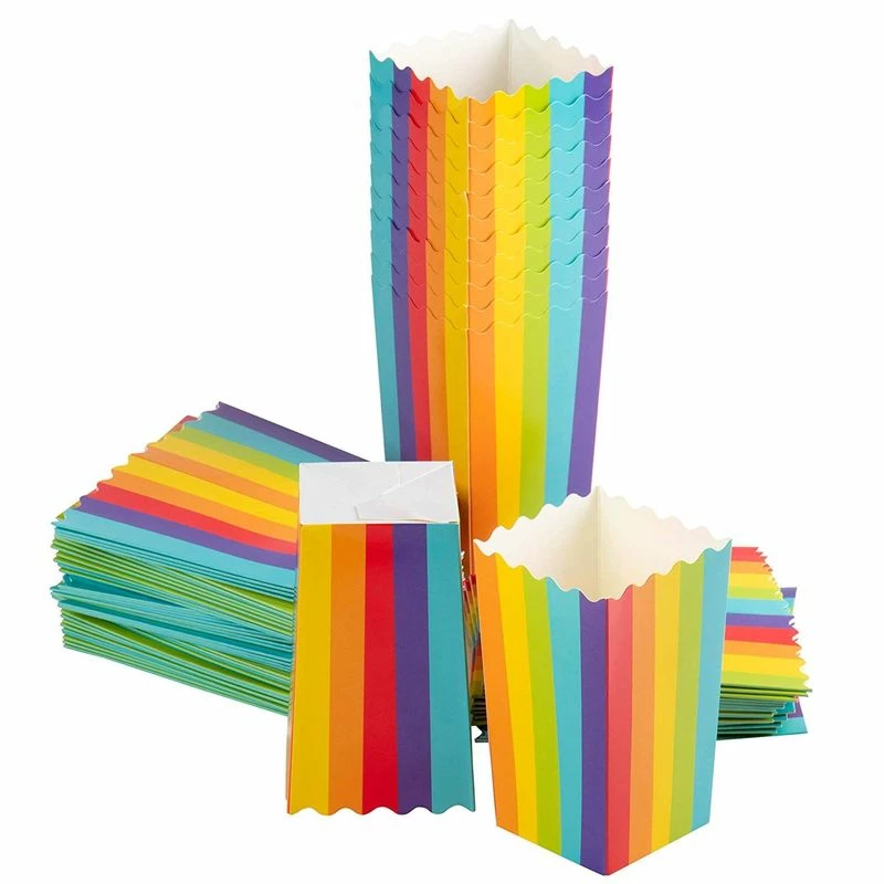 - POPCORN BOXES: Score big at your party with these mini rainbow popcorn box containers