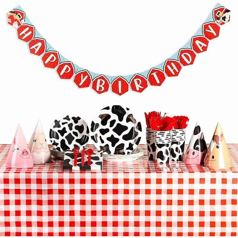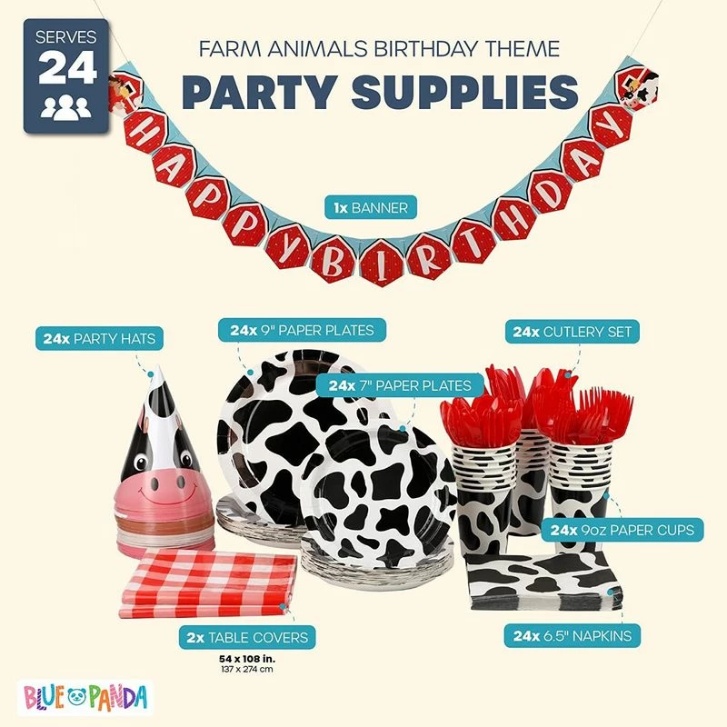- FARM ANIMAL BIRTHDAY PARTY: Tableware set, napkins, and paper cups feature cut farm animals and cow print; ideal for creating a celebratory atmosphere for your upcoming kids birthday party