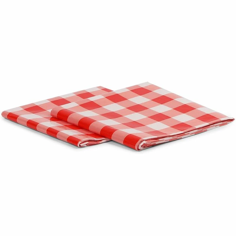 - DIMENSIONS: The cow print dinner plates measure approximately 9 inches in diameter; cow print dessert plates measure approximately 7 inches; cow print party napkins: 6.5 x 6.5 inches folded; cow print paper cups: 3 x 3.5 inches; red gingham tablecloth: 54 x 108 inches