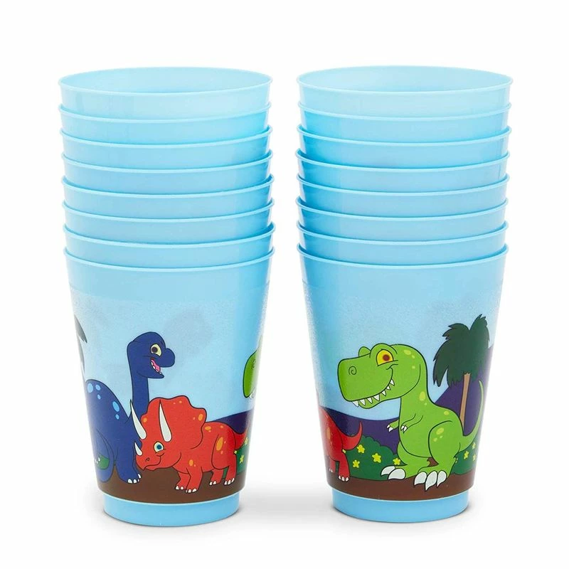 - One pack contains 16 reusable cups each in blue color with cute dinosaur design