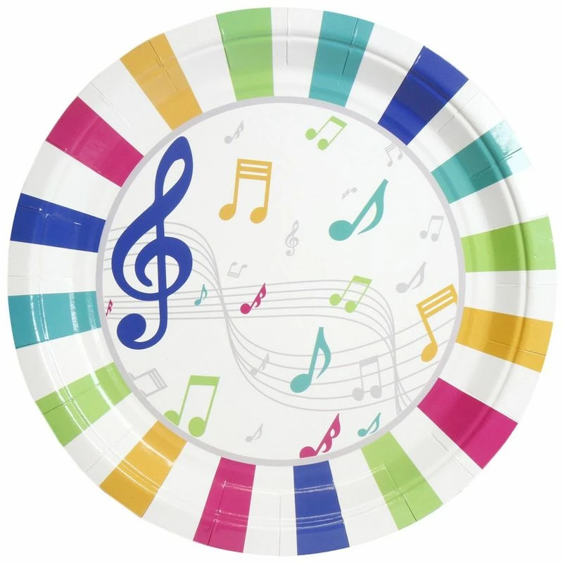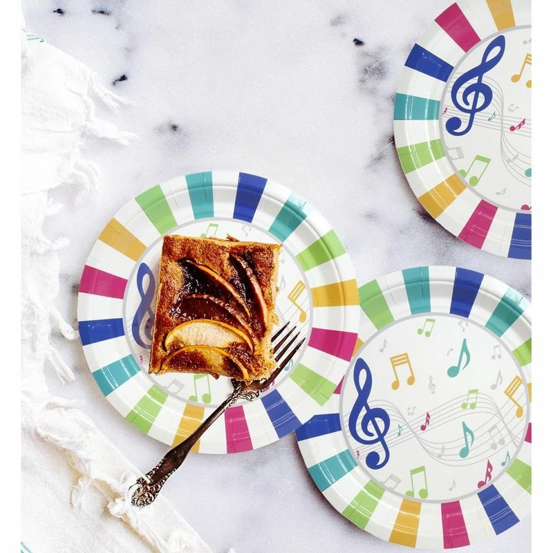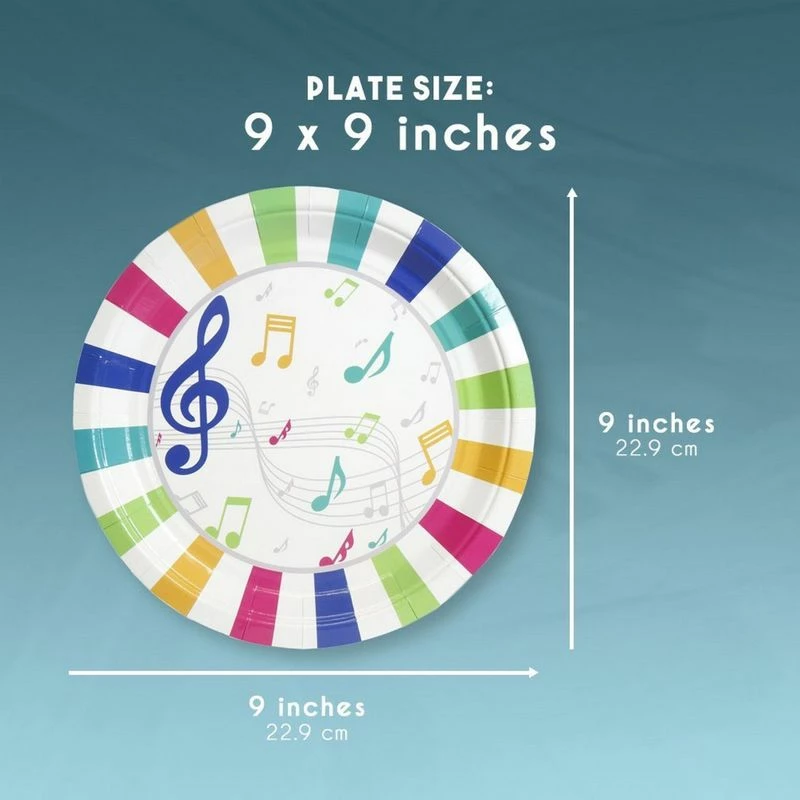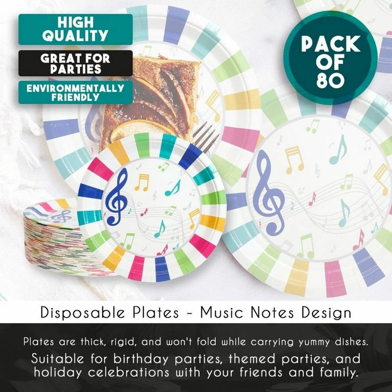 - SERVES 80: Includes enough plates for 80 guests; contains 80 paper plates featuring musical notes.