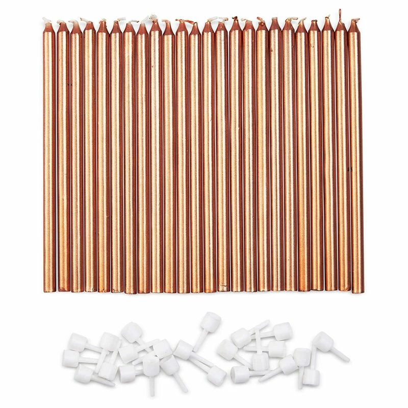 Celebrate your 18th birthday, reunion, or anniversary with themed birthday decorations and these elegant metallic candles with holders. These long thin birthday candles are made of paraffin making them non-toxic and harmless to use. These candles for birthday supplies are a great way to decorate your cakes, desserts, and more. The candle holders provided with the candles make it easy to hold and insert the candles.