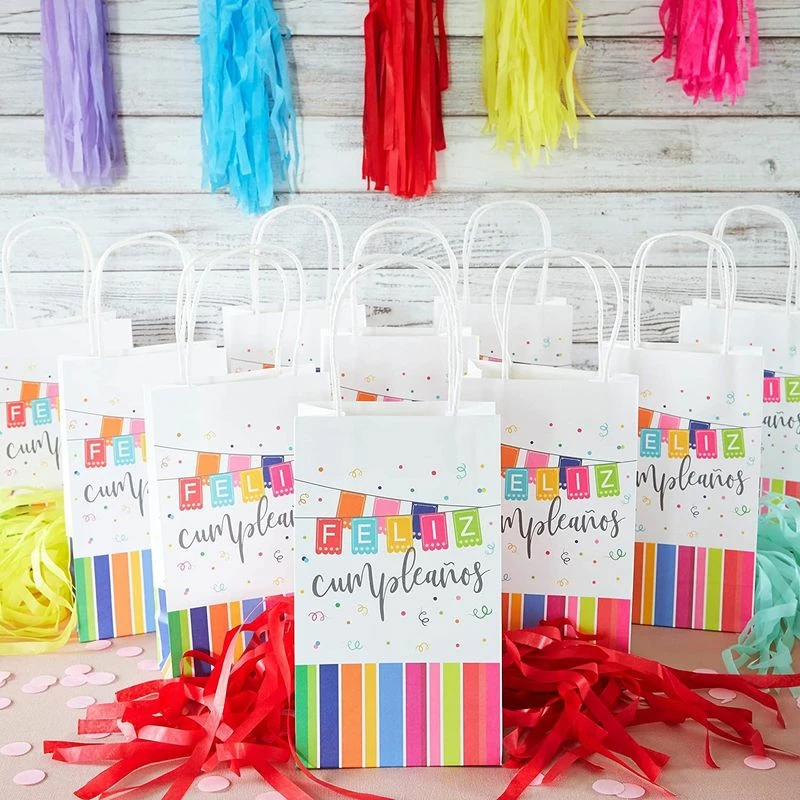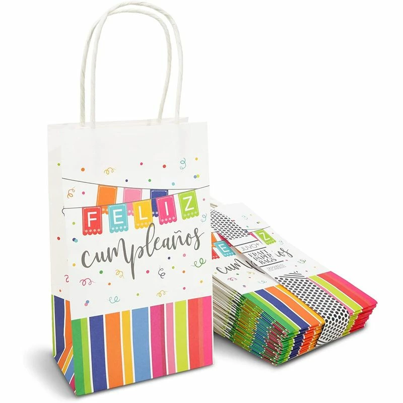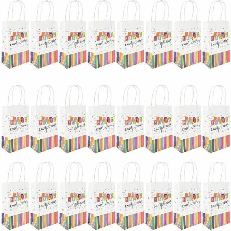 24 Pack Feliz Cumpleanos Birthday Paper Gift Bags with Handles 9 x 5.3 x 3.15 inches – JJ121819-01
