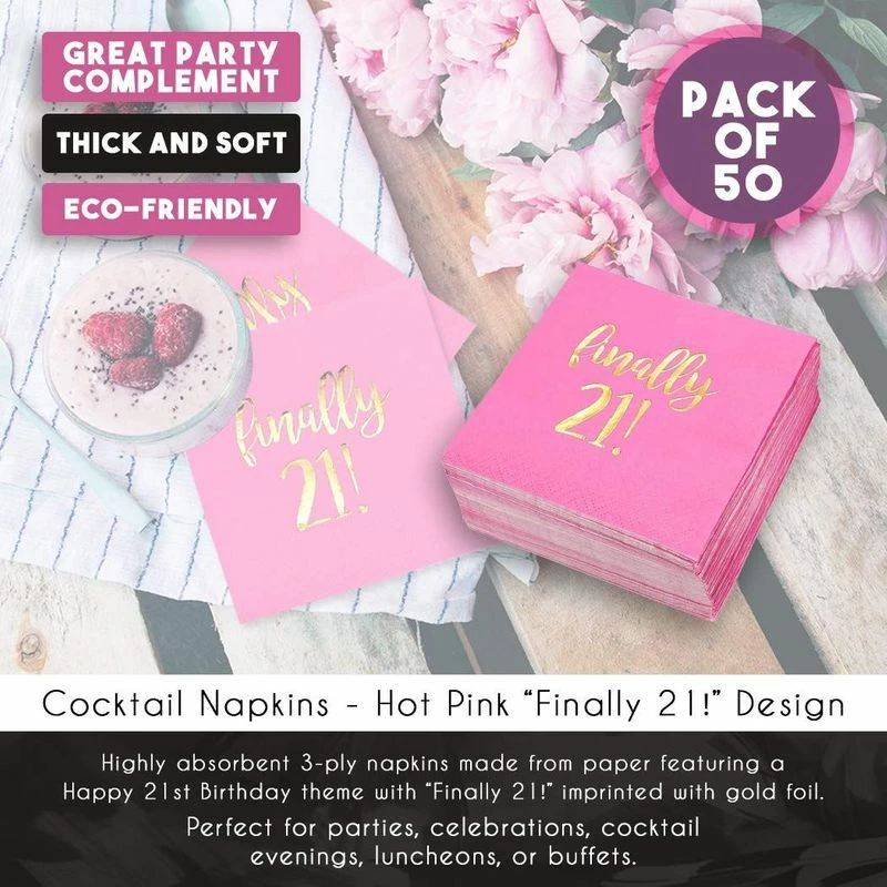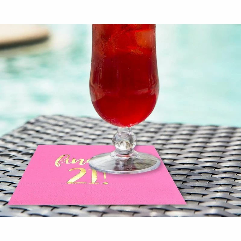 - HIGHLY ABSORBENT PAPER: 50 highly absorbent 3-ply napkins made from paper featuring a Happy 21st Birthday theme with “Finally 21” imprinted with gold foil.
