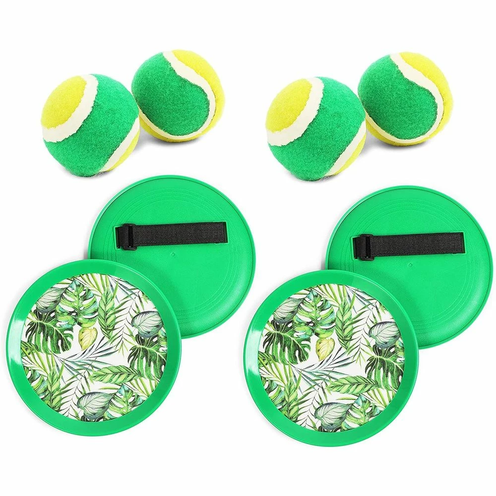 Paddle Toss and Catch Ball Set for Kids with 4 pcs 8″ Paddles, 4pcs 2.56″ Balls with drawstring storage bag, Tropical leaves