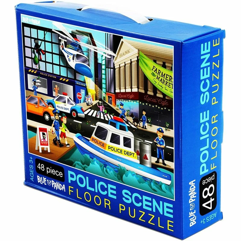 - POLICE FLOOR PUZZLE: This 48-piece police car floor puzzle features police cars and crime scene