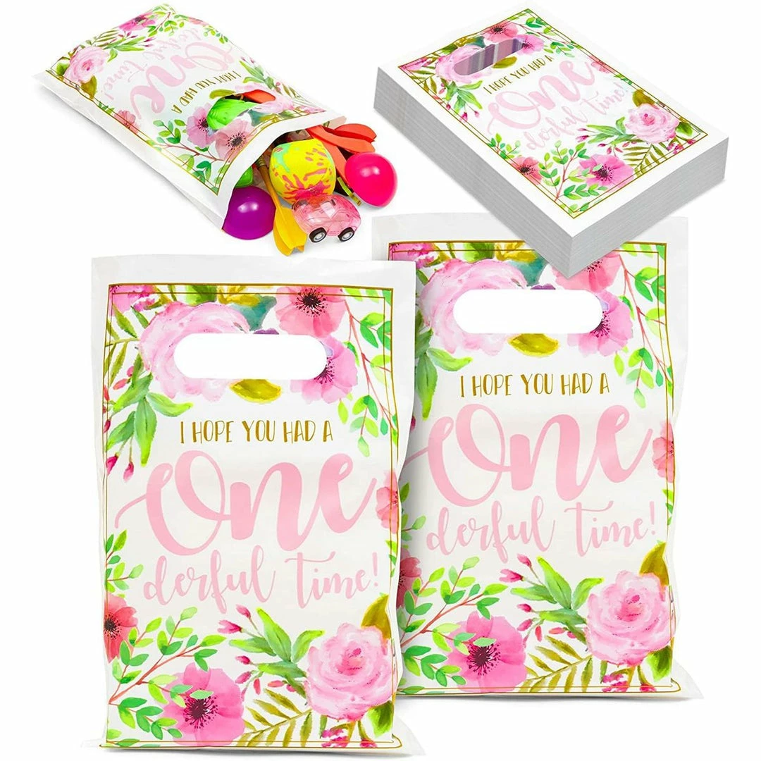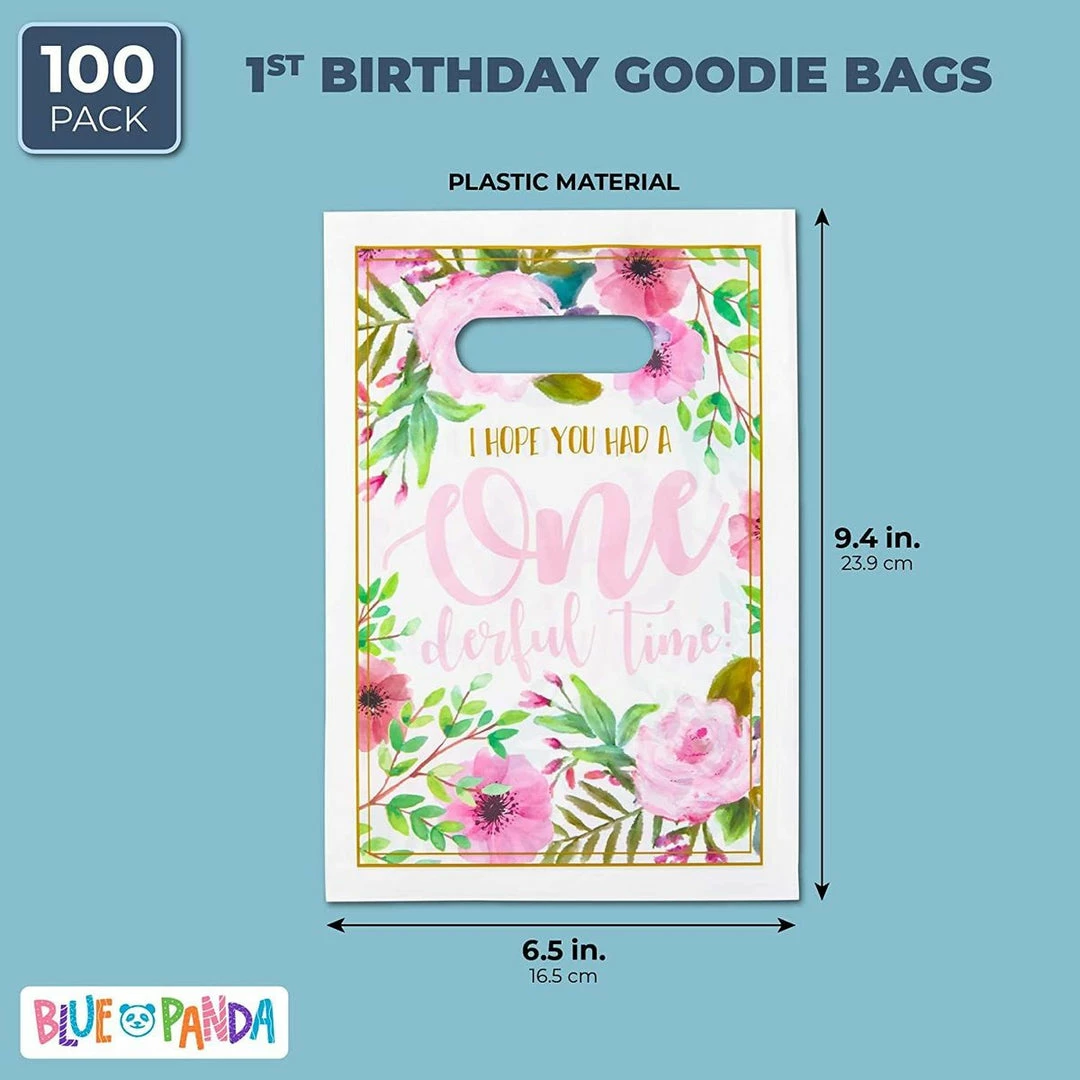 100 Pack Loot Bags 6.5 x 9.25 inches 2 sided printing Girls 1st Birthday