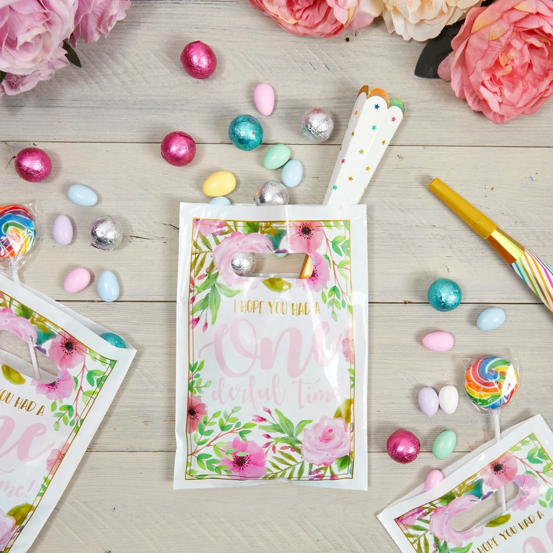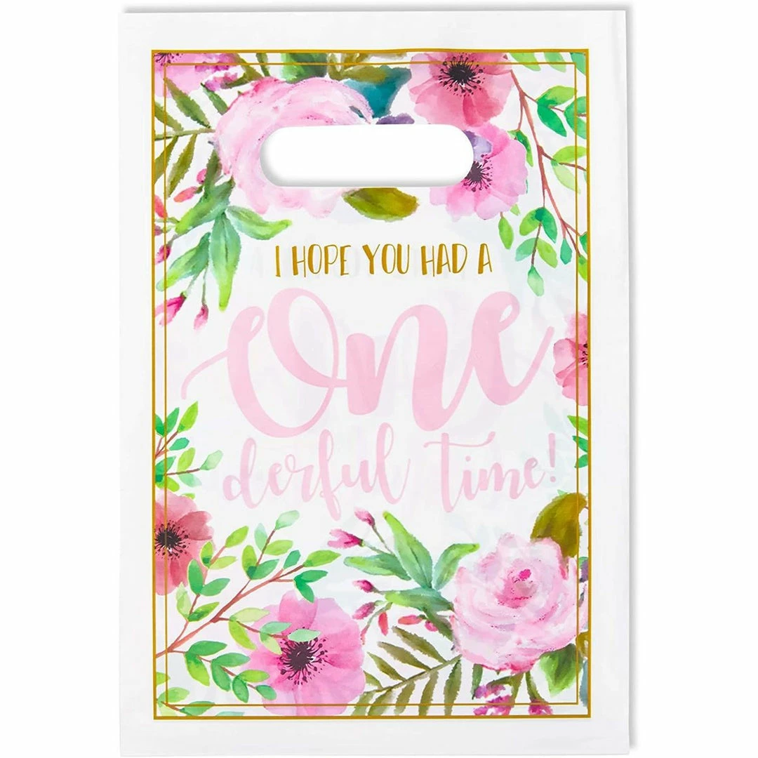 Kids and adults of all ages will light up with joy once they receive one of these goody bags stuffed with candy, toys, and gifts. These festive plastic goodie bags each measure 9.45 x 6.5 inches, the decorative Hawaiian flowers and “I hope you had a onederful time” text will create a cohesive and coordinated theme throughout your event. You’ll receive 100 total white and pink favor bags to ensure you have more than enough for all of your guests!