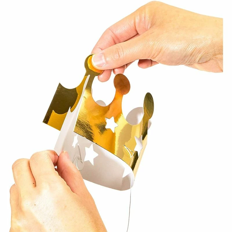 These paper crown hats will add magic to your party! The caps feature a bright and bold gold foil design, perfect to get the party started. The sturdy caps are fashioned with premium quality cardstock paper for durability