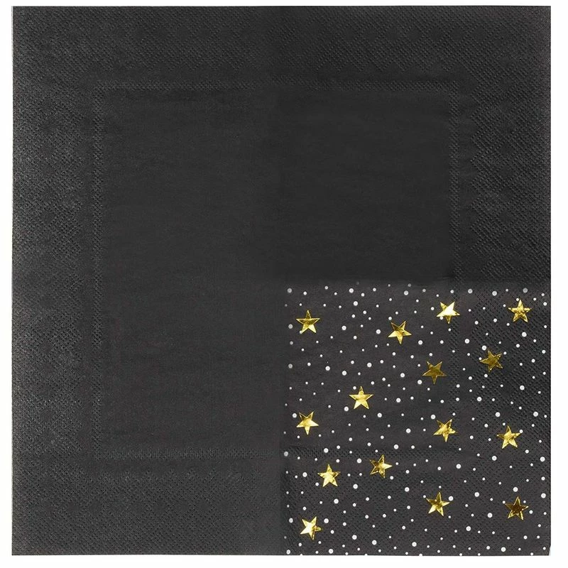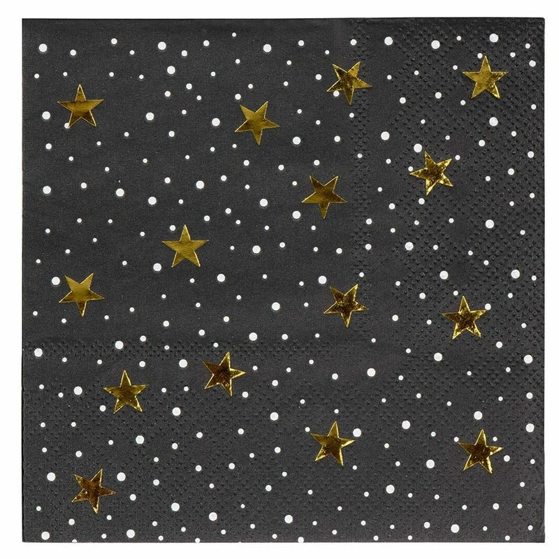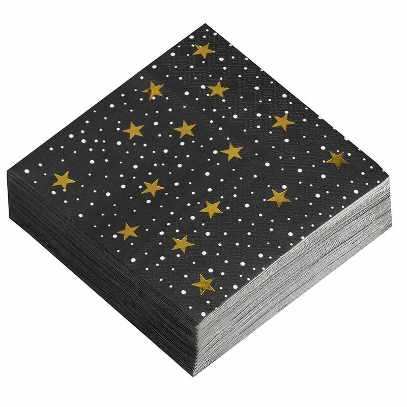 Cocktail Napkins 50 Pack Luncheon Napkins, Disposable Paper Napkins Party Supplies, Starry Night with Gold Foil Stars Design, Unfolded 10 x 10 Inches, Folded 5 x 5 Inches