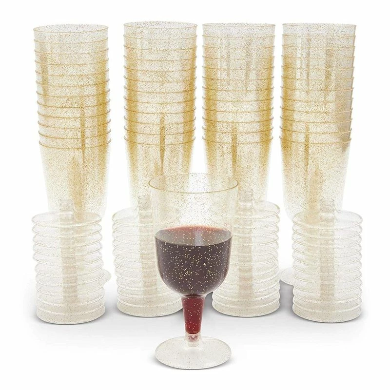 50 Pack Gold Glitter Plastic Wine Cups 7oz
