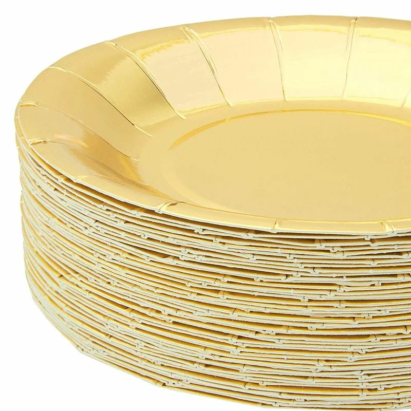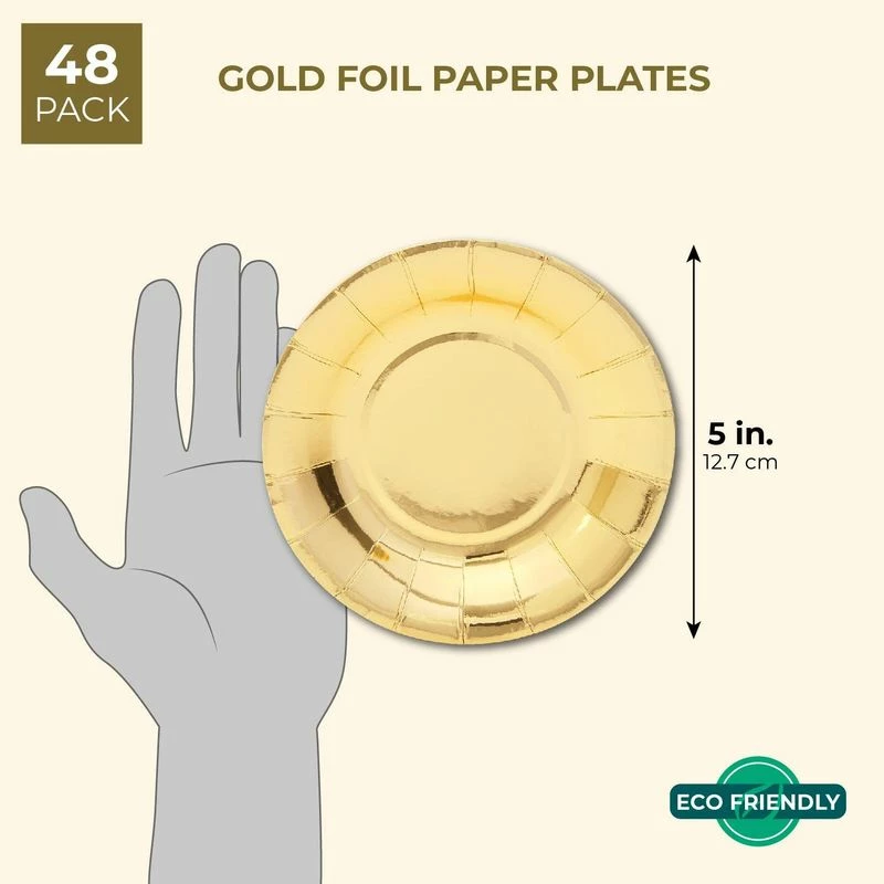 - DIMENSIONS: Gold paper plates measure approximately 5 inches in diameter
