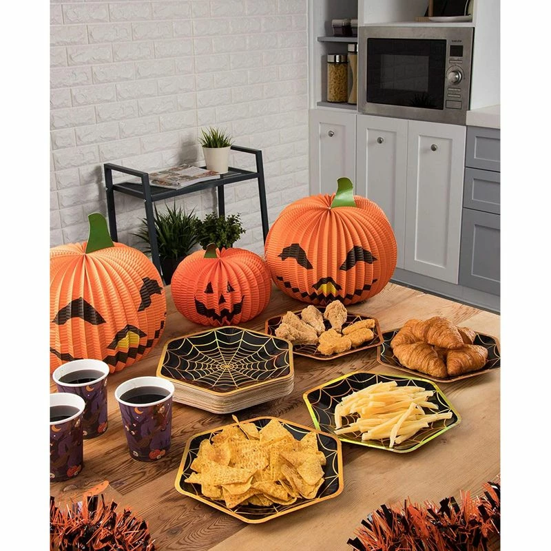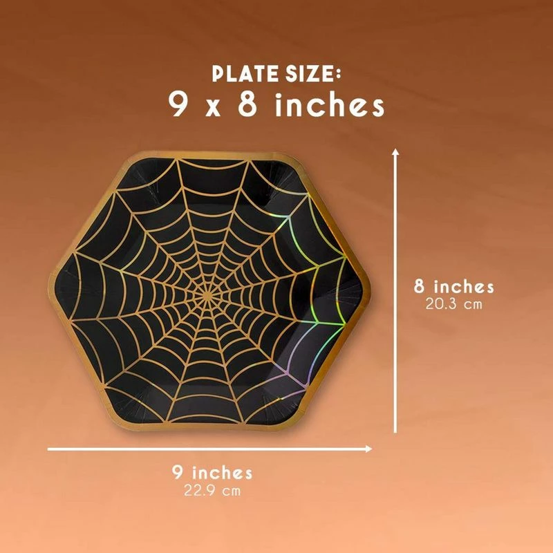 - Dimensions: This Halloween party pack set includes 9 x 8 inch spider web plates