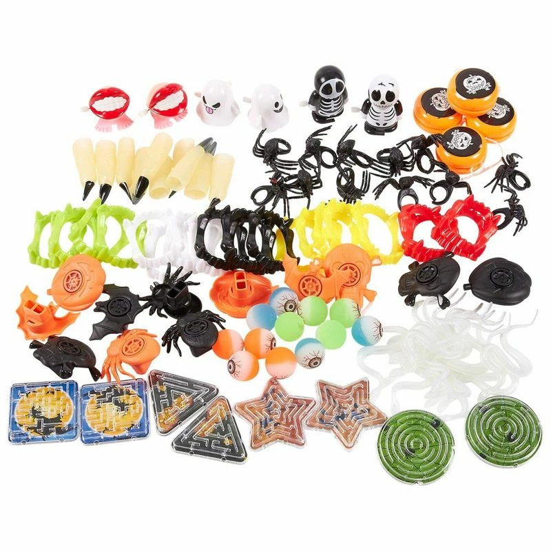- Halloween Party Favors: This fun 100-Piece set of Halloween party favor toys is designed for any Halloween-themed party or event and comes with a variety of different favors for a special trick-or-treat