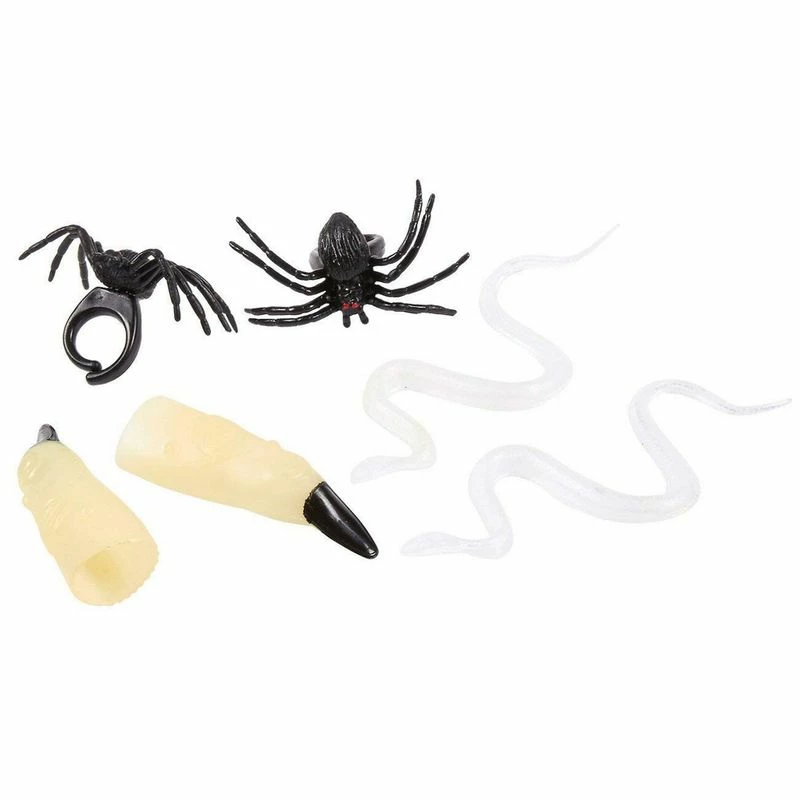 - Spooky Gifts: This full set of Halloween party favors includes wind-up teeth, wind-up skeletons, wind-up ghosts, pumpkin-shaped yo-yo toys, vampire dentures, spooky fingers, Halloween maze puzzles, Halloween whistles, snakes, eye-shaped bouncy balls, spider-shaped rings