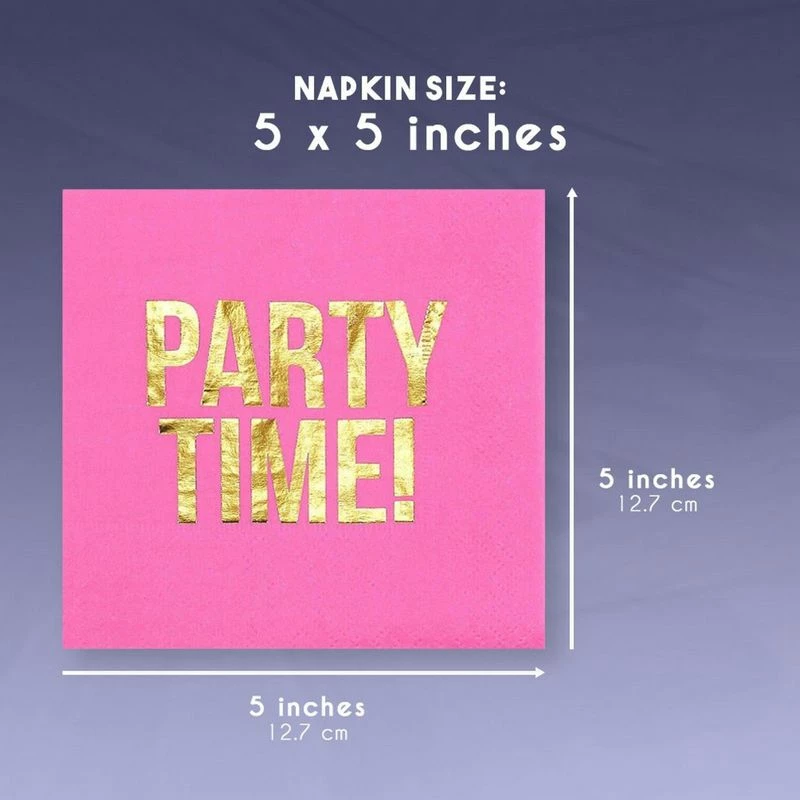 - SAVE MONEY, BUY IN BULK: Save time and money with this bulk napkin pack; includes a total of 50 napkins to ensure you have enough for your upcoming “Party Time!” birthday, anniversary, bachelorette, or celebration