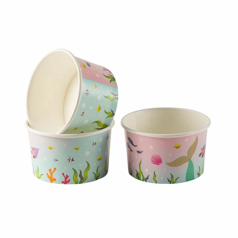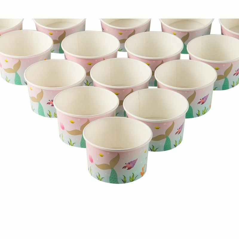 Ice Cream Sundae Cups 50 Piece Disposable Paper Desser Yogurt Bowls, Mermaid, 8 Ounce