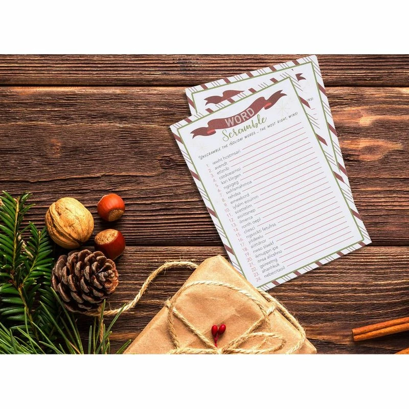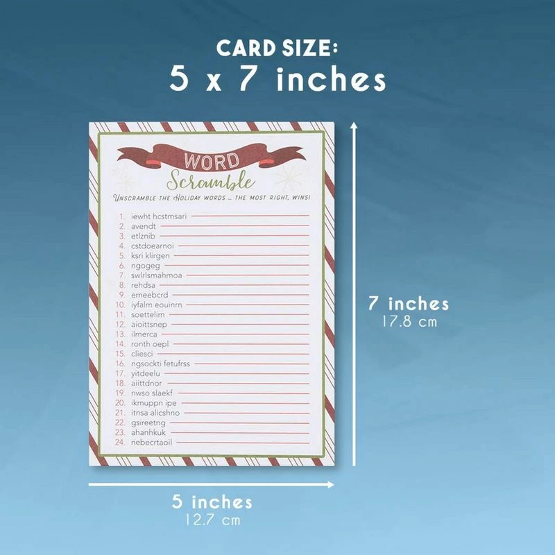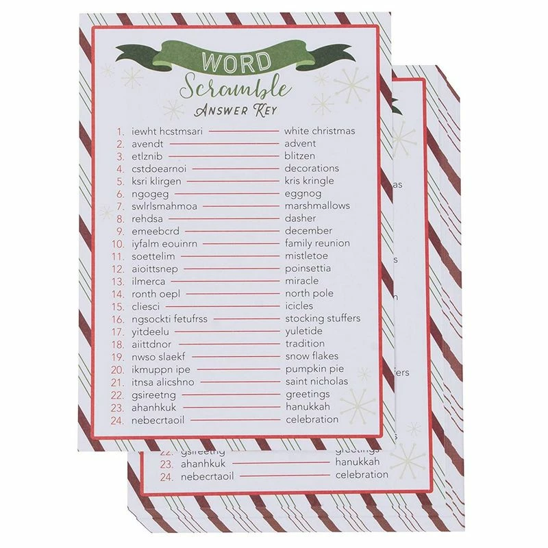 - HOLIDAY GAME SET: This Christmas game kit includes 50 word scramble cards and 2 answer keys with classic holiday designs. Light up your festive celebration with these fun game cards!