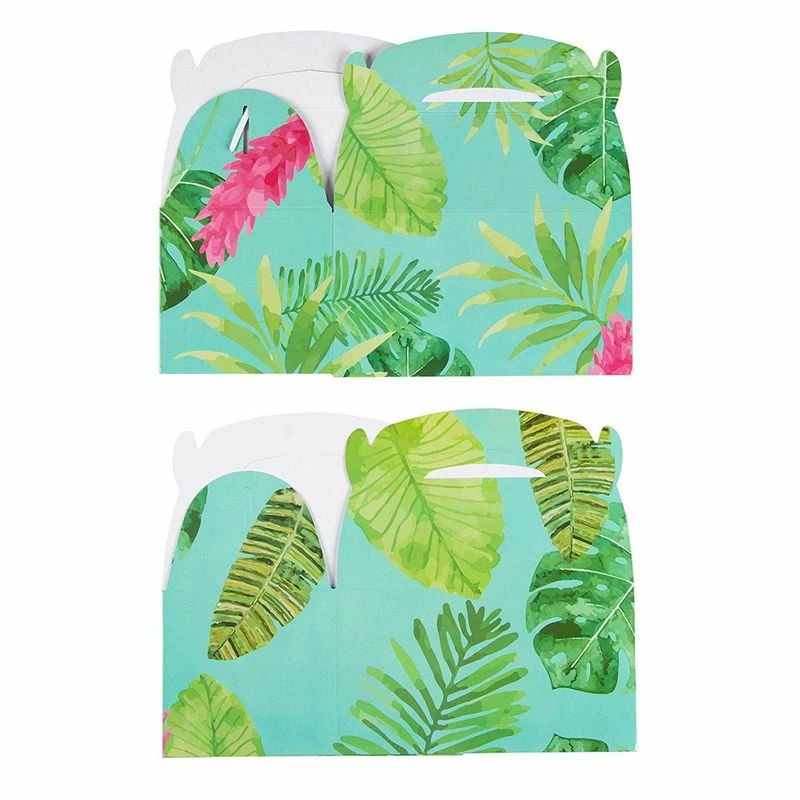 - Luau Party Favor Boxes: Fill these tropical luau favor boxes with candy, toys, and small gifts; the tropical palm leaf design will perfectly compliment your luau party decor