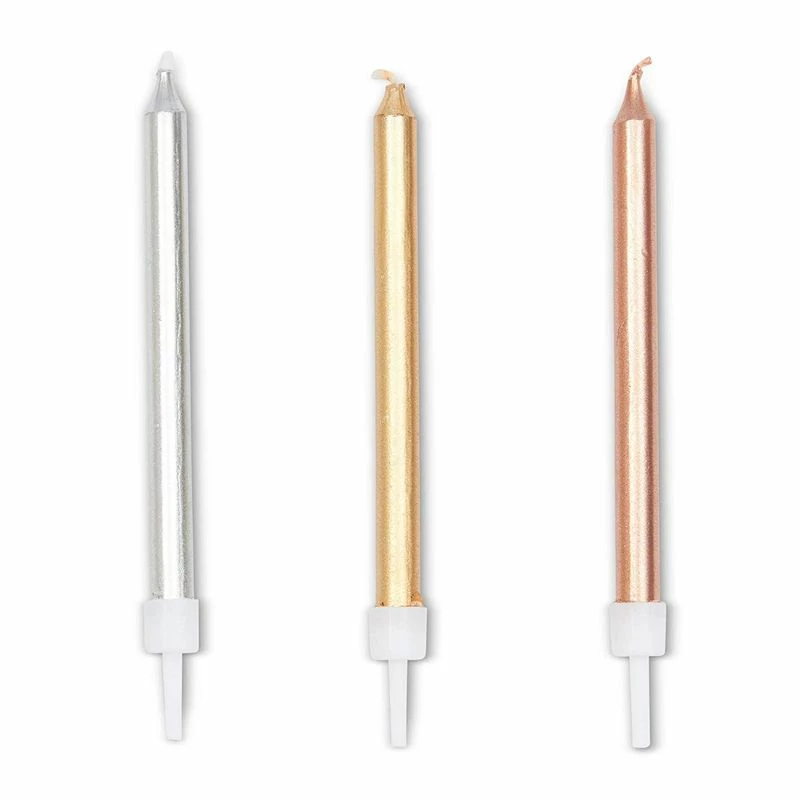 - Candles feature a metallic design that’s ideal for all age Birthday parties, anniversaries, graduations, holiday celebrations, and other special occasions