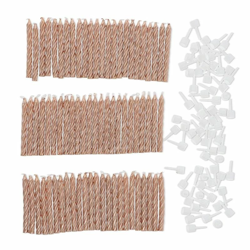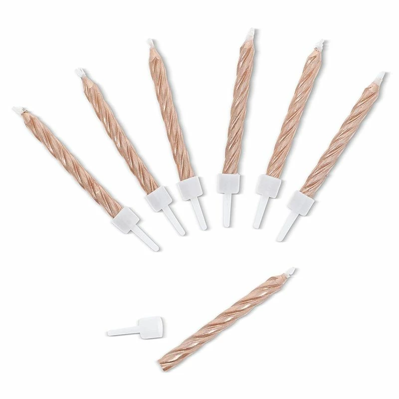 - Cake Topper Candles: These festive candles feature a metallic rose gold striped design