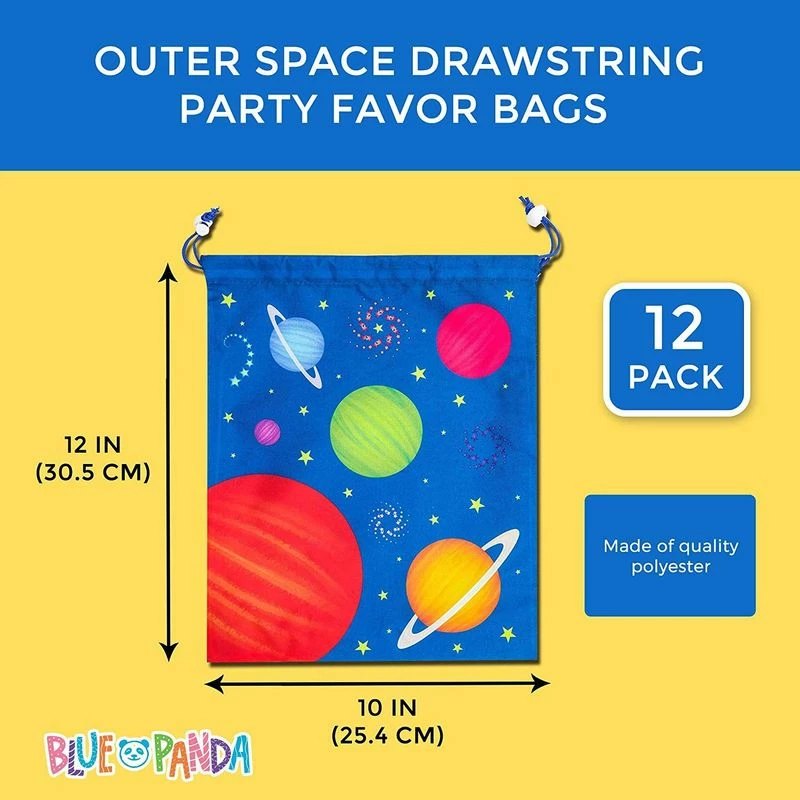 12 Pack Drawstring Party Favor Bags -Outer space