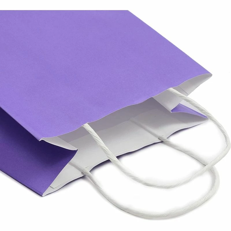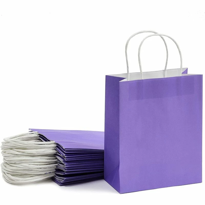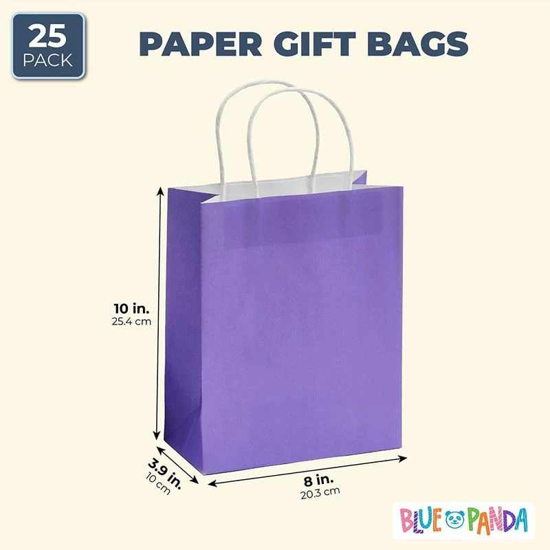 25 Pack Purple Paper Gift Bags with Purple Handles, 8 L x 4 W x 10 H inches (Medium Sized)