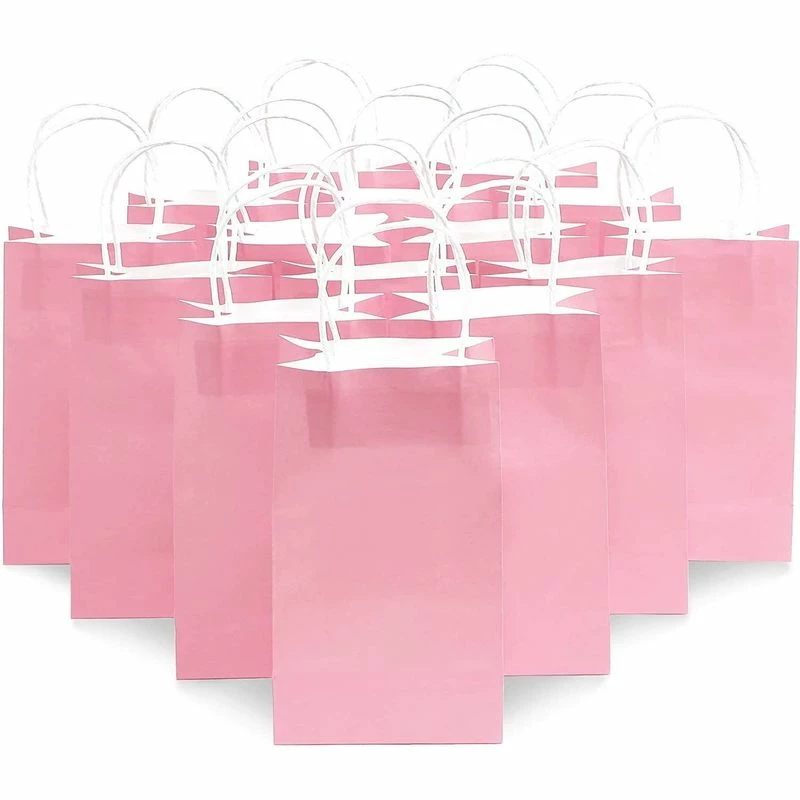 25 Pack Pink Paper Gift Bags with Pink Handles, 9 x 5.3 x 3.15 inches