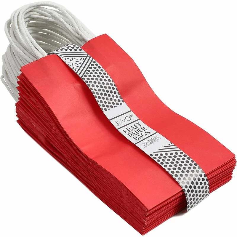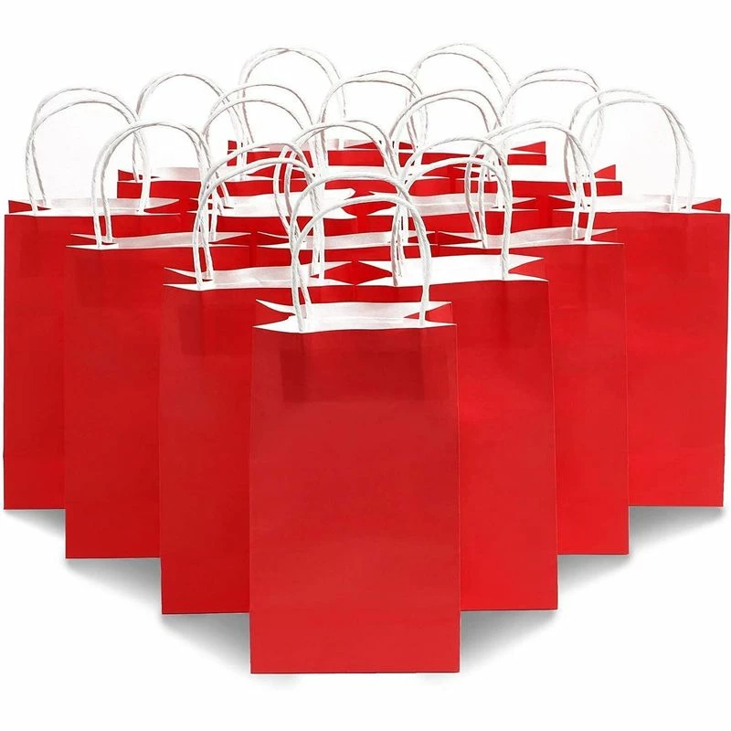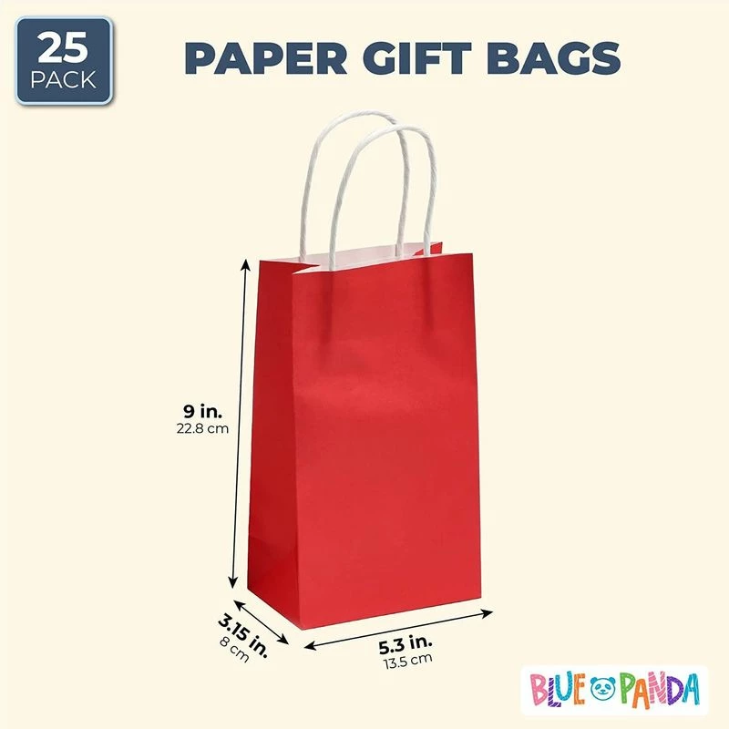 25 Pack Red Paper Gift Bags with Red Handles, 9 x 5.3 x 3.15 inches
