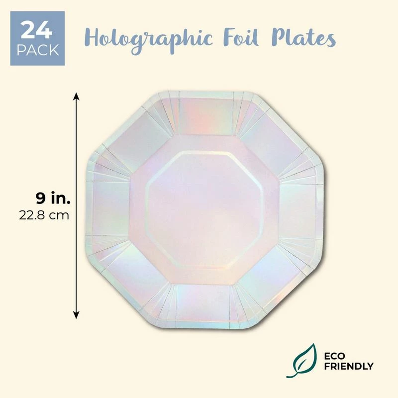 24 Pack Octogon Paper Plates 9 inches – Holographic Foil