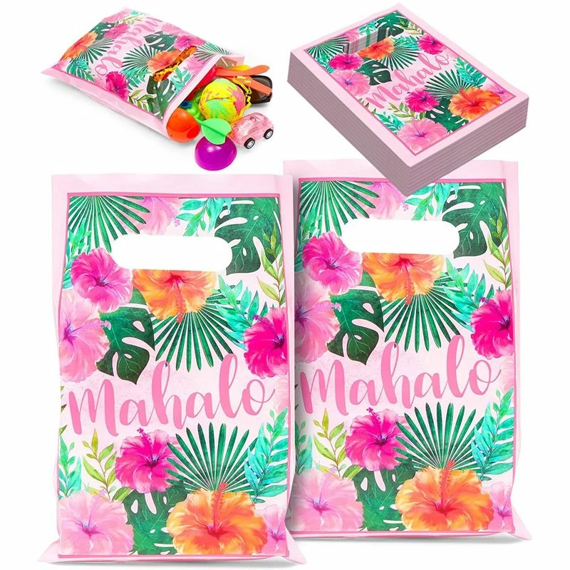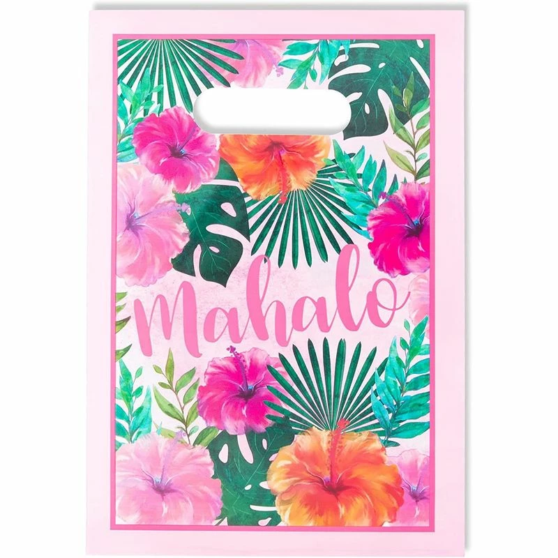 - Hawaiin Design: Our party favor gift bags feature a decorative Hawaiian floral leaf design with text that reads “mahalo”