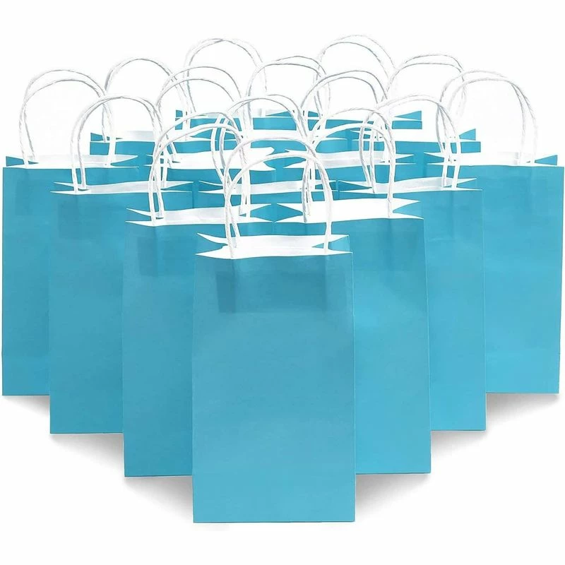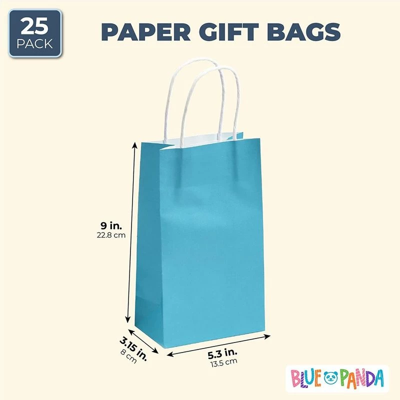 25 Pack Blue Paper Gift Bags with Blue Handles, 9 x 5.3 x 3.15 inches