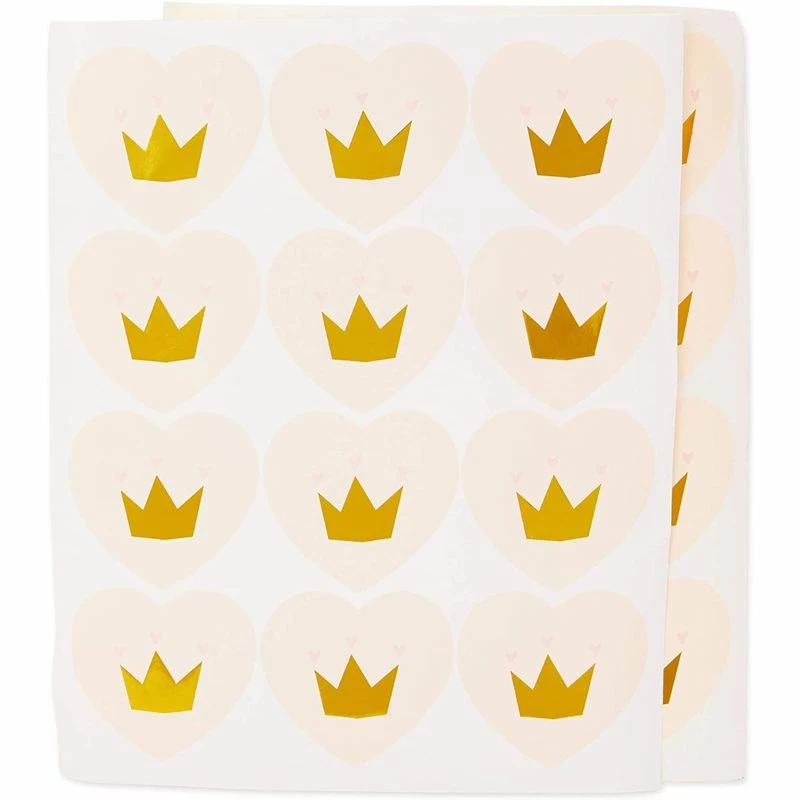 24 Pack Princess White Kraft Treat Bags with Stickers, Gold Foil Accents