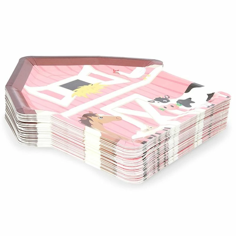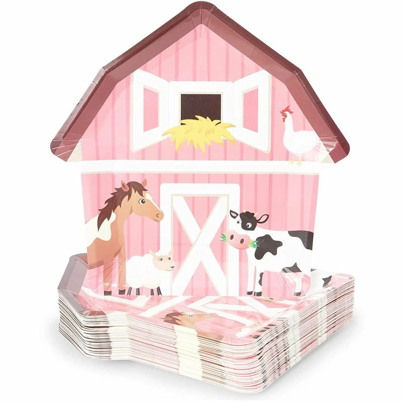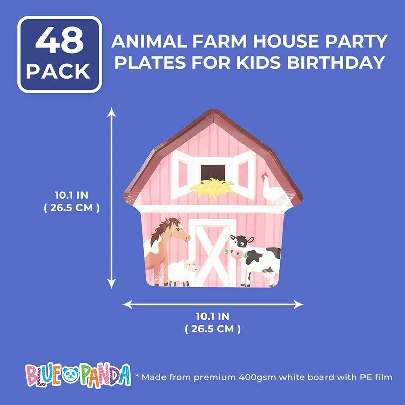 - SERVES 48: Includes 48 paper plates in a farmyard, barnhouse shape