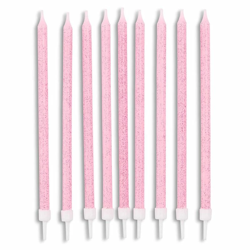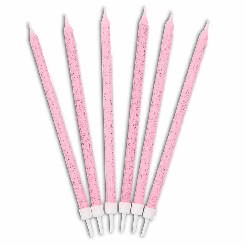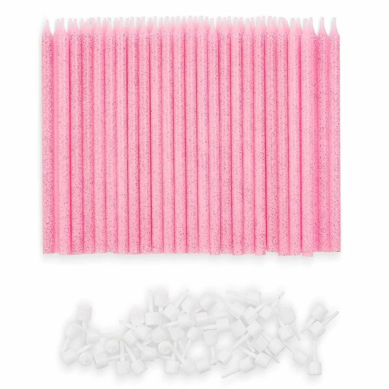 - Cake Topper Candles: These festive candles feature pink with hot pink glitter confetti design