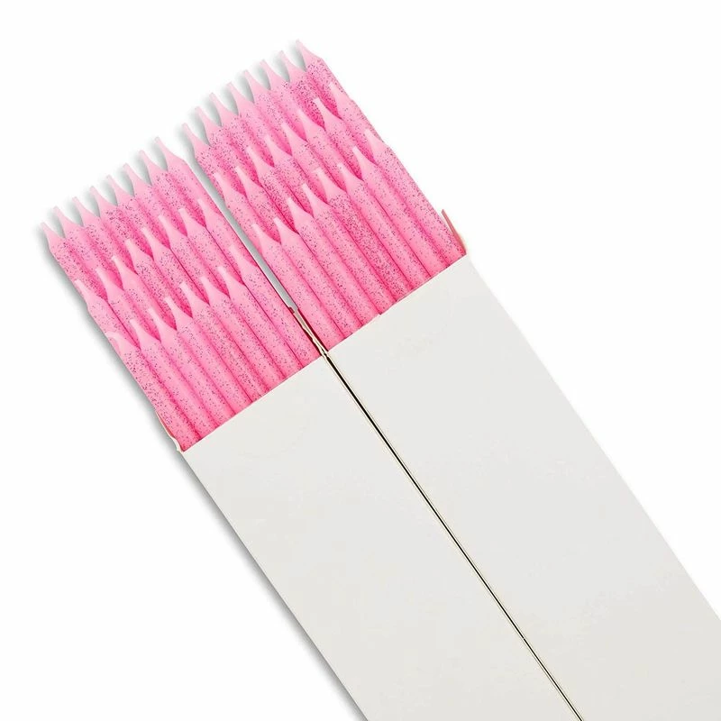 2 Boxes of 24 Pack Light Pink Candles with Pink Glitter, 5 Inches L, with Holders