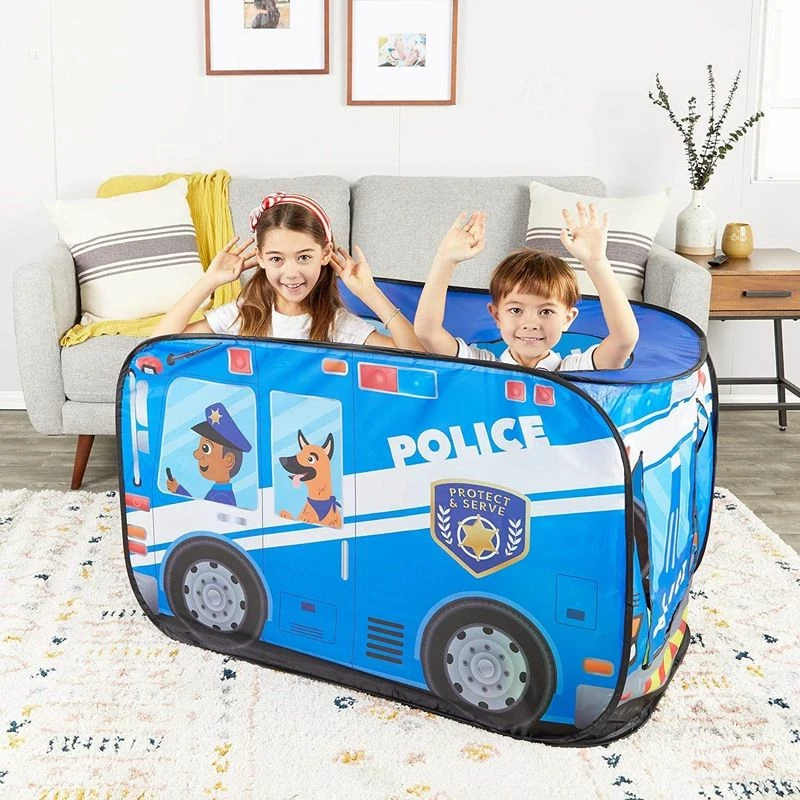 - Play Tent: Encourage creative thinking and open up the imagination of your little one, this police car kids play tent features a police car design with two openings on the top and one on the back